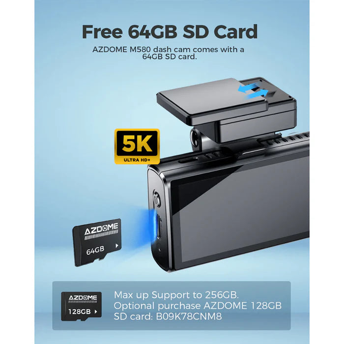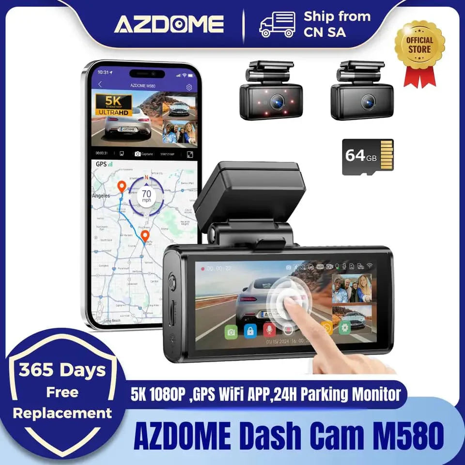 AZDOME M580 5K Dash Cam with GPS & WiFi - كاميرا سيارة أزدوم أمامية وخلفية بدقة 5K